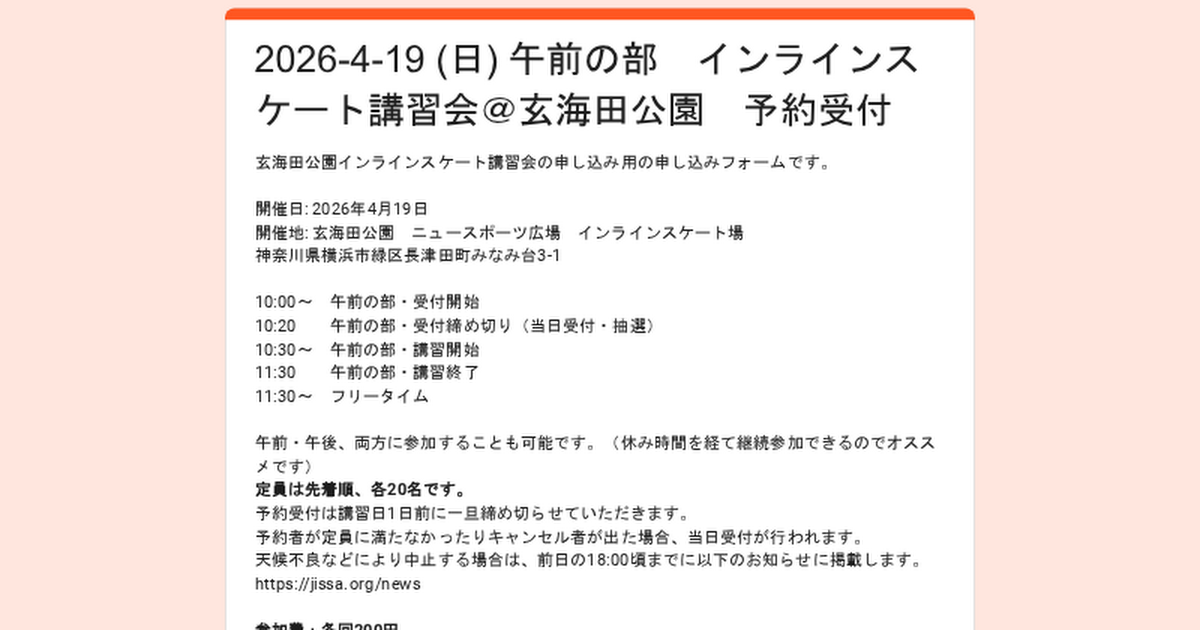 - 参加費200円については当日現地受付にて現金にてお支払いください。キャンセル料は発生しません。